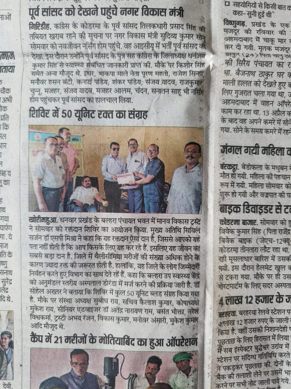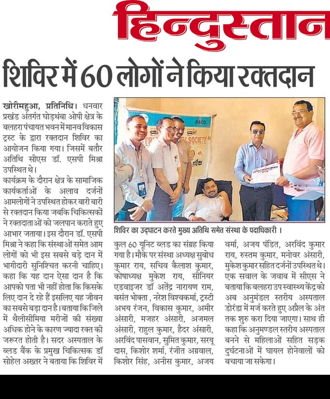 including blood donation camps, tree plantation